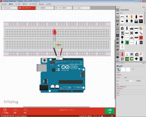 電子回路設計ソフトfritzingでは、3種類のモード(ブレッドボード、回路図、プリント基板)で回路図が作成出来ます。 今回はブレッドボードモードを使って、基本のArduinoUNOでLチカする回路を作ってみたいと思います。 1. 準備 fritzingがインストールされたP…